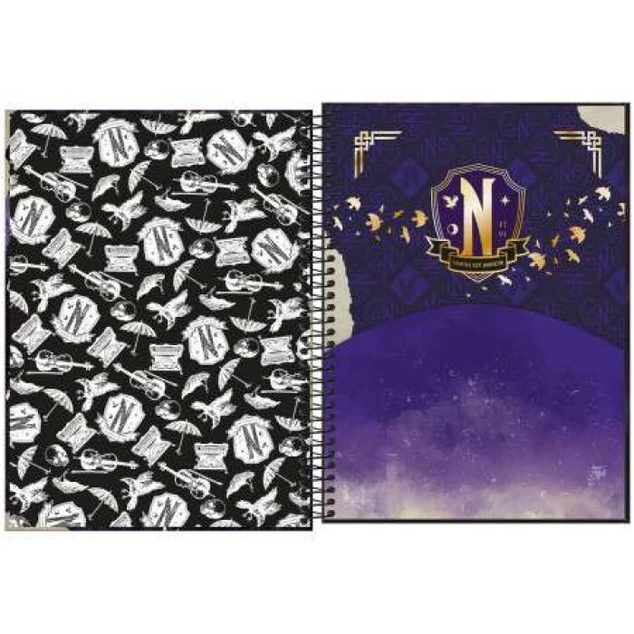 O Caderno Espiral Capa Dura Universitário 10 Matérias Wandinha 160 Folhas possui capa dura com acabamento metalizado, parte interna decorada, bolsa de papel decorada para guardar trabalhos e anotações, folha com adesivos funcionais e folhas pautadas. Ideal para o dia a dia na escola ou na faculdade.
