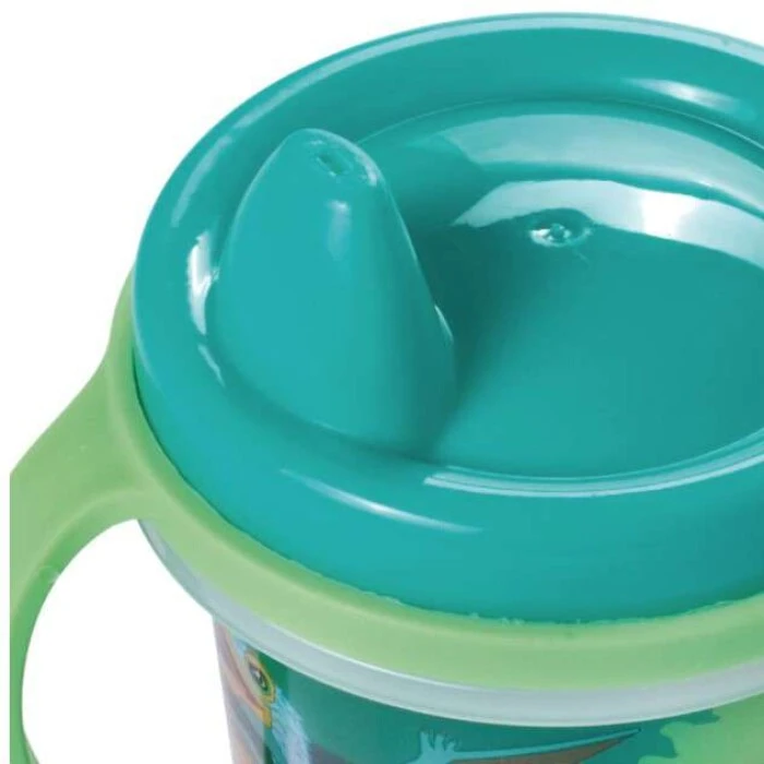 Caneca Dinossouro Baby com alças laterais , tampa protetora e bico 330 ml.