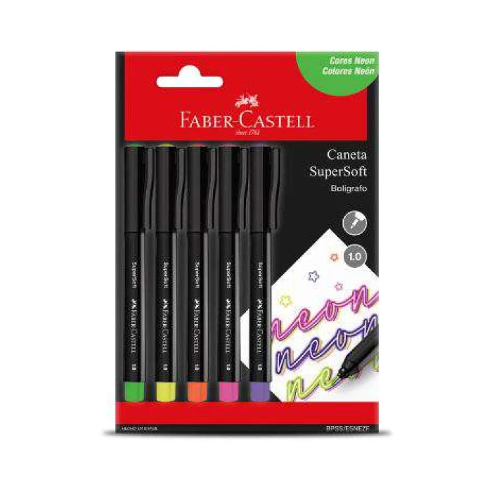 Caneta SuperSoft Neon Estojo com 5 unidades - Faber Castell