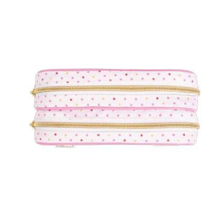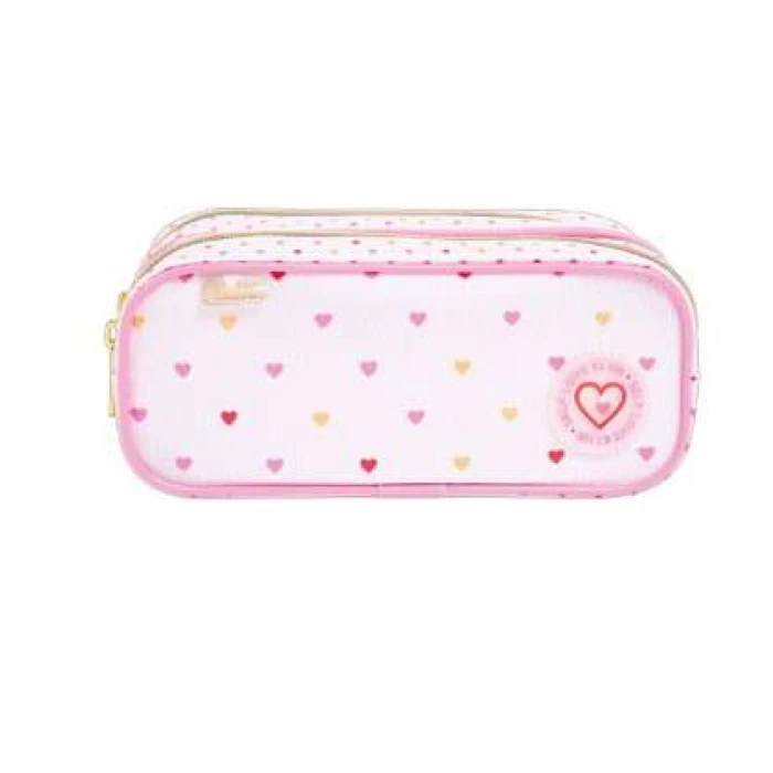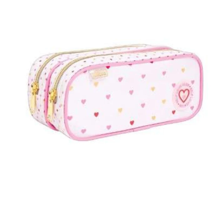 O Estojo Duplo Grande Académie Coração Metalizado é prático, espaçoso e ideal para quem possui muitos lápis, canetas e outros materiais e acessórios. Além de facilitar seu dia a dia na escola, esse estojo possui material resistente, dois compartimentos que auxiliam na organização do material e fechamento em zíper.