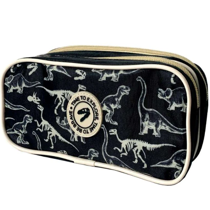 Estojo Duplo Dinossauros Preto - Vini Forte