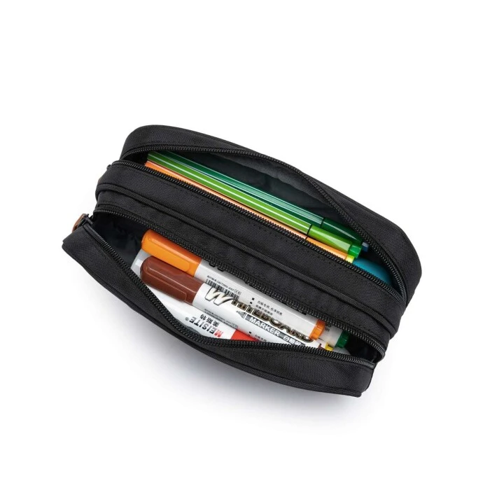 Estojo Duplo é prático, espaçoso e ideal para quem possui muitos lápis, canetas e outros materiais e acessórios. Além de facilitar seu dia a dia na escola, esse estojo possui material resistente, dois compartimentos que auxiliam na organização do material e fechamento em zíper.
