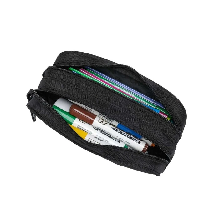 Estojo Duplo, possui fechamento com zíper e puxadores personalizados.