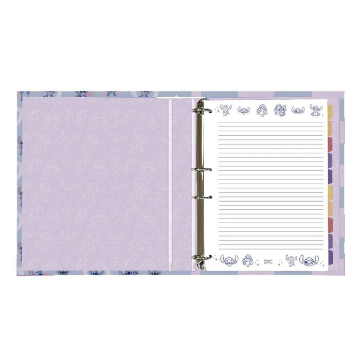 O fichário Colegial do Stitch é lindo e super estiloso, tem alta resistência e durabilidade. Ideal para estimular a organização dos estudos diários e alcançar as metas e objetivos sem perder a motivação. Cheio de versatilidade ao inserir ou retirar folhas, pois as argolas articuladas abrem, possibilitando esta ação. Útil e fofo, foi feito para arrasar! Pronto para escola ou faculdade.
