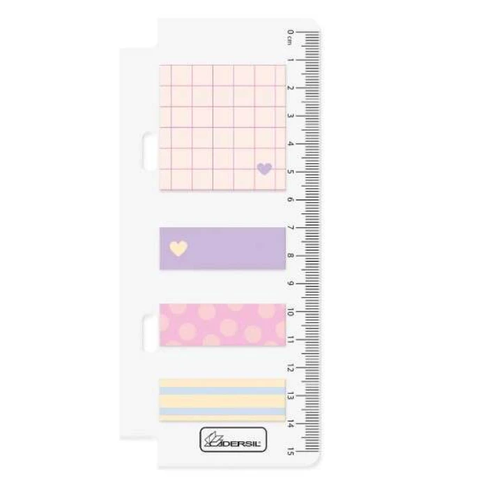 Régua com bloquinhos de adesivos autocolantes
