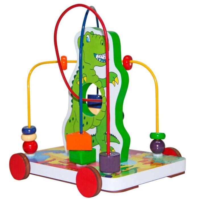 Brinquedo confeccionado em madeira, M.D.F. e arame. Composto por 03 circuitos e 17 peças de formas variadas e coloridas. Arame resistente e pintado com tinta atóxica.