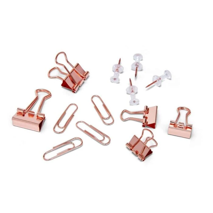 Alerta de tendência! O rosé gold chegou pra ficar na linha Pop Office também! Com acessórios lindos e práticos para o seu escritório: 15 prendedores de papel 15mm, 7 prendedores de papel 19mm, 33 clips e 20 alfinetes. Contém 75 peças.