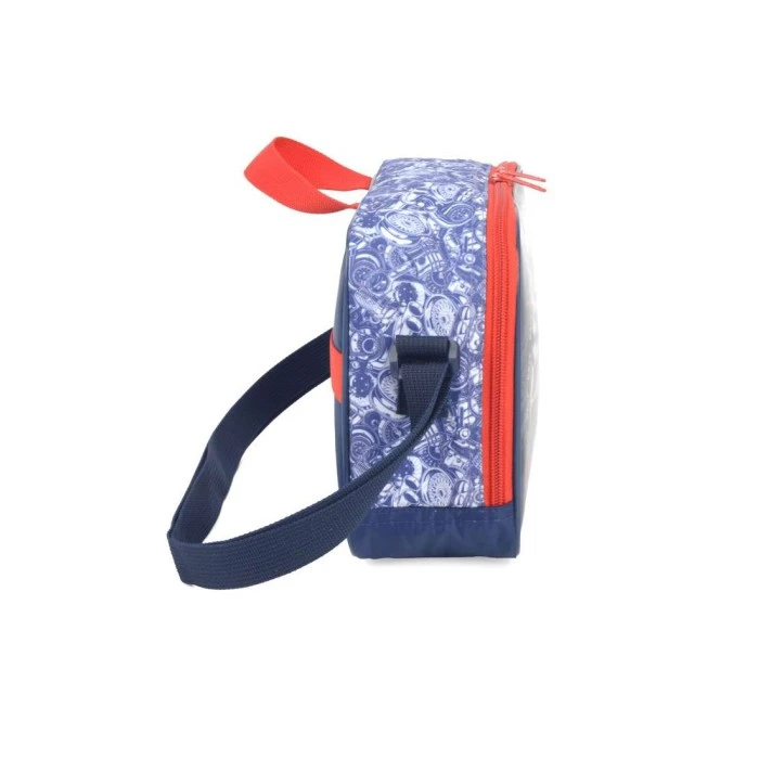 A lancheira é ideal para armazenar o lanche das crianças com muito cuidado, mantém o alimento resfriado por até 4 horas. Possui alça para carrinho e alça lateral.