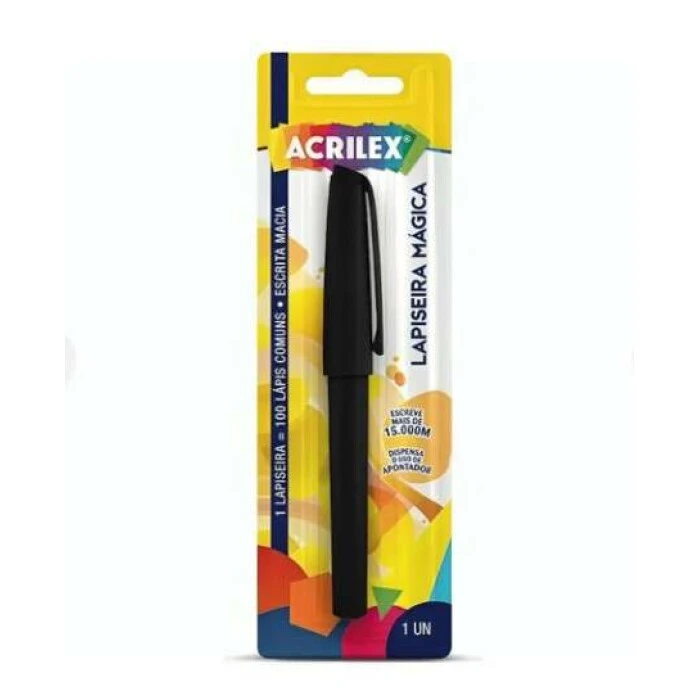 A Lapiseira Mágica Preta, também conhecida como Lapiseira Infinita da Acrilex, é a ferramenta perfeita para criar e inovar sem limites! Com um design especial que não precisa de afiação, ela garante traços suaves e consistentes, ideal para qualquer tipo de projeto artístico.
