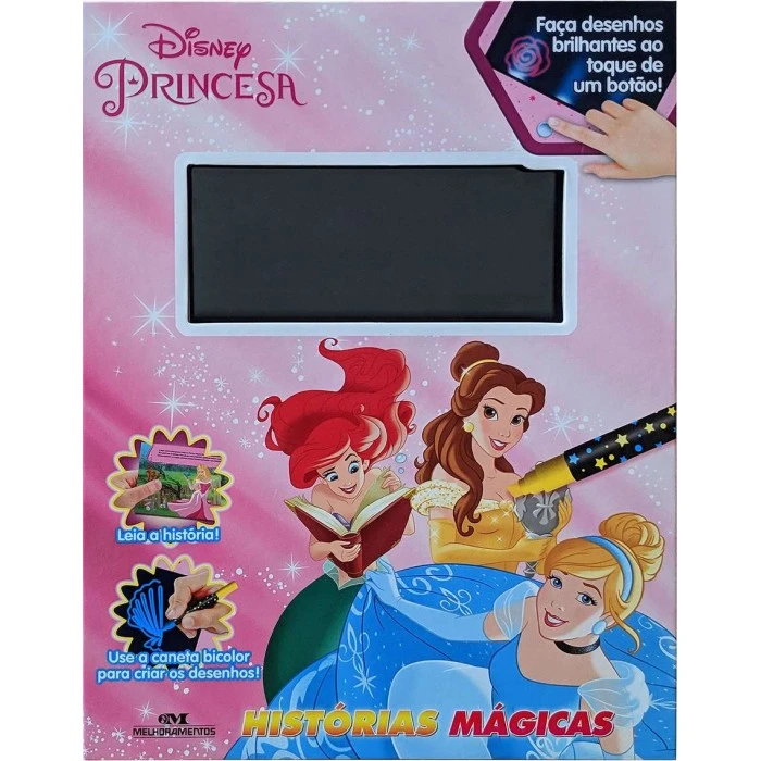 Com o livro Histórias Mágicas você vai experimentar um conjunto lúdico entre a leitura, desenhos e história. O livro inclui uma linda história das princesas, possui 6 efeito de luzes e uma tela fácil de limpar.