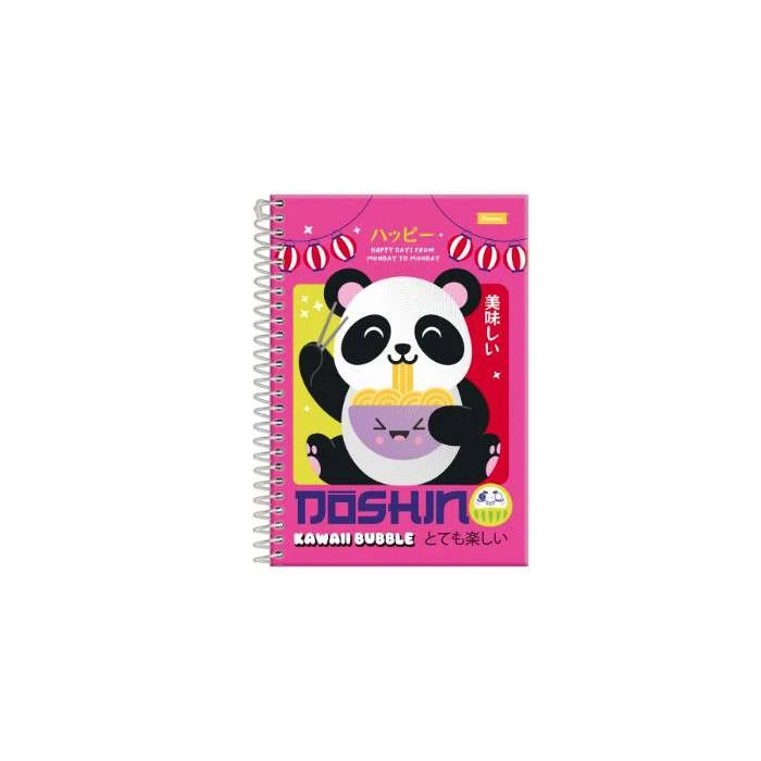 Disponível em diversas estampas da coleção Doshin; escolha específica pode ser solicitada nas observações do pedido, caso contrário, o envio será feito conforme a disponibilidade em estoque (caderno grande).