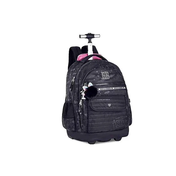 Mochila de rodinha Rebecca Bonbon, mochila escolar feminina, mochila com notebook, mochila infantil de rodinha, mochila fashion, mochila feminina com rodinhas, mochila Rebecca Bonbon original, mochila com patches, mochila de menina estilosa, mochila premium.