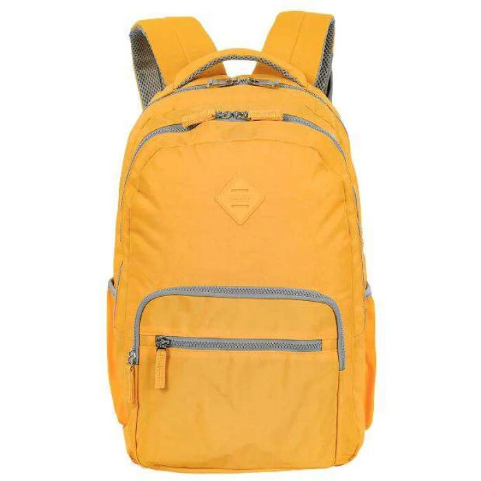 Mochila 2 Compartimentos Sestini College Crinkle 3 - Amarelo produzida em nylon, possui 2 compartimentos, alças e costas espumadas, alça de mão, bolso frontal com zíper, bolso escondido nas costas, bolsos laterais com elástico e bolso para celular na alça