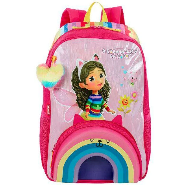 No final do arco-íris, tem a mochila da Sestini feita para as fãs d’A Casa Mágica da Gabby! Com acabamento superior e um amplo compartimento interno, esta mochila destaca-se pelo bolso frontal macio no formato e com as cores do arco-íris. O painel frontal é fácil de limpar e a versão com alça de costas tem reforço espumado, com ajuste para altura do ombro.