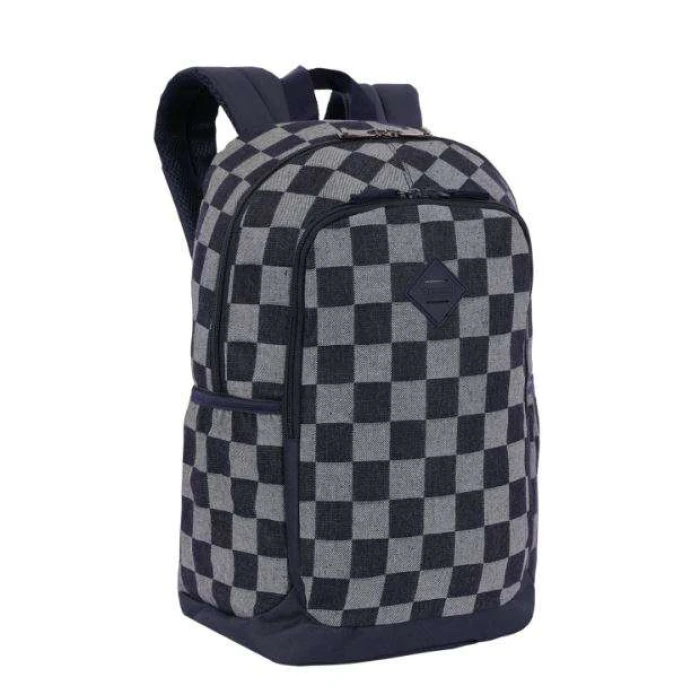 Mochila Sestini Magic - Jeans Xadrez Azul possui alças de costas espumadas e reguláveis, bolsos laterais com elástico, organizador interno, bolso para celular com organizador de fone de ouvido, bolso com tira-cartão na alça, bolso escondido nas costas, puxador com trava anti furto e bolso frontal com zíper.