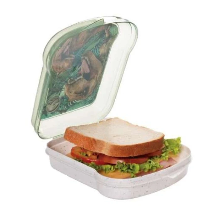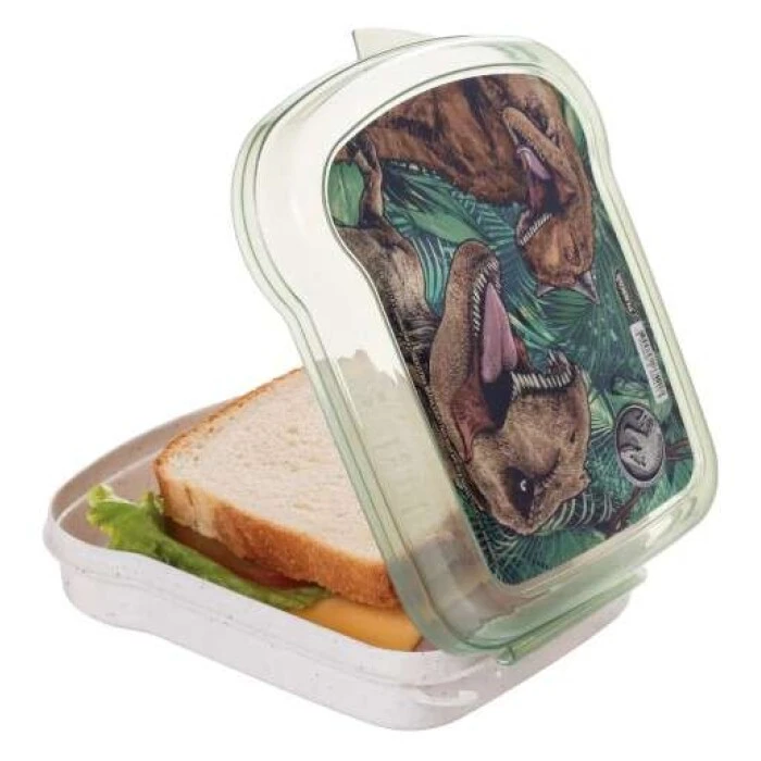 Sanduicheira Jurassic Word com tampa fixa, prática, resistente e perfeita para levar os lanches no dia a dia.