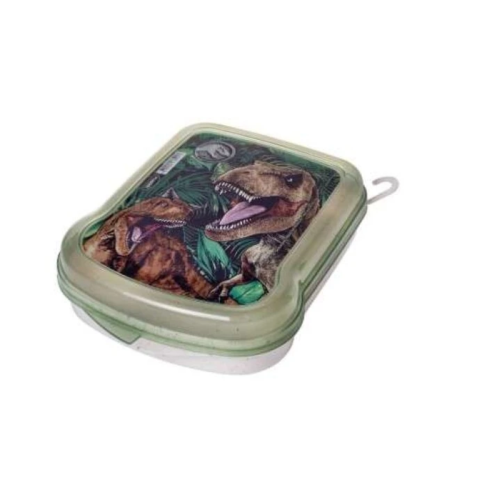 Sanduicheira Jurassic word , Sanduicheira infantil, Pote de lanche dinossauro, Sanduicheira com tampa fixa, Lancheira plástica jurassic word, Sanduicheira BPA Free, Sanduicheira prática, Pote para lanche escola, dino,dinossauros