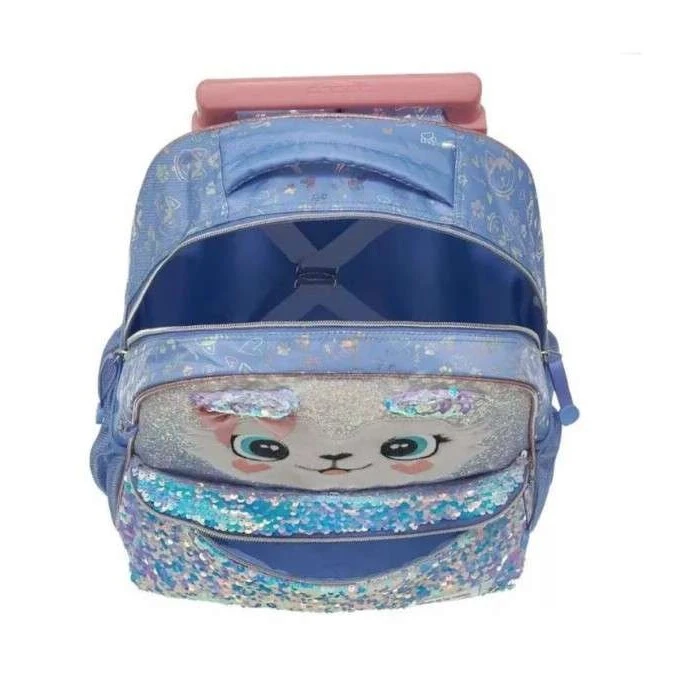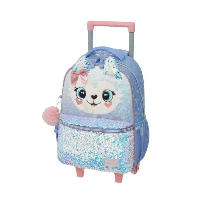 Variedade: Disponível em modelos de costas e de rodinhas, e frequentemente em kits com lancheira térmica combinando.