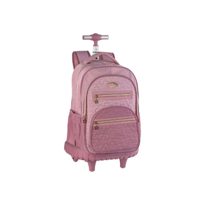mochila com rodinhas; mochila Packn’Go; mochila rose; mochila escolar com rodinhas; mochila com alça retrátil; mochila grande; mochila funcional; mochila para escola; mochila resistente; mochila com compartimentos; mochila com bolso lateral; mochila com bolso frontal; mochila prática; mochila de carrinho; mochila estilo rosê; mochila diária.