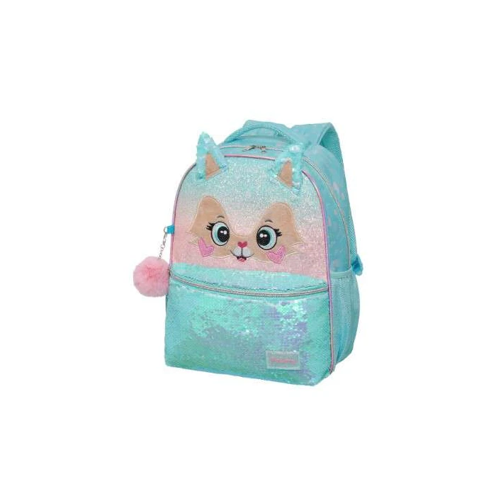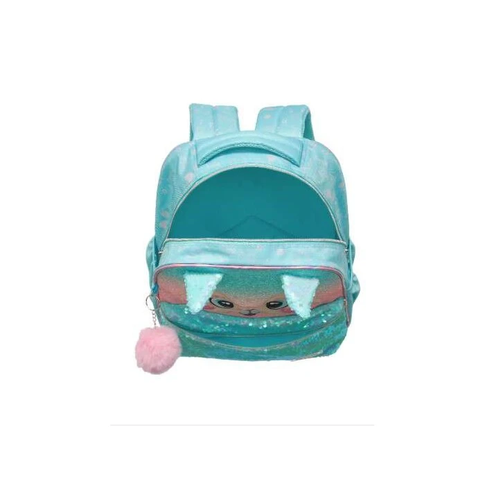A Mochila Pack Me Fox Azul da Pacific é uma mochila escolar estilosa para meninas, feita de poliéster, com estampa de raposa charmosa que pode incluir detalhes em lantejoulas, glitter, orelhas 3D, e rosto bordado, possuindo compartimento principal amplo, bolso frontal e laterais para garrafas, alças ajustáveis, sendo ótima para o dia a dia escolar com um toque divertido e alegre.