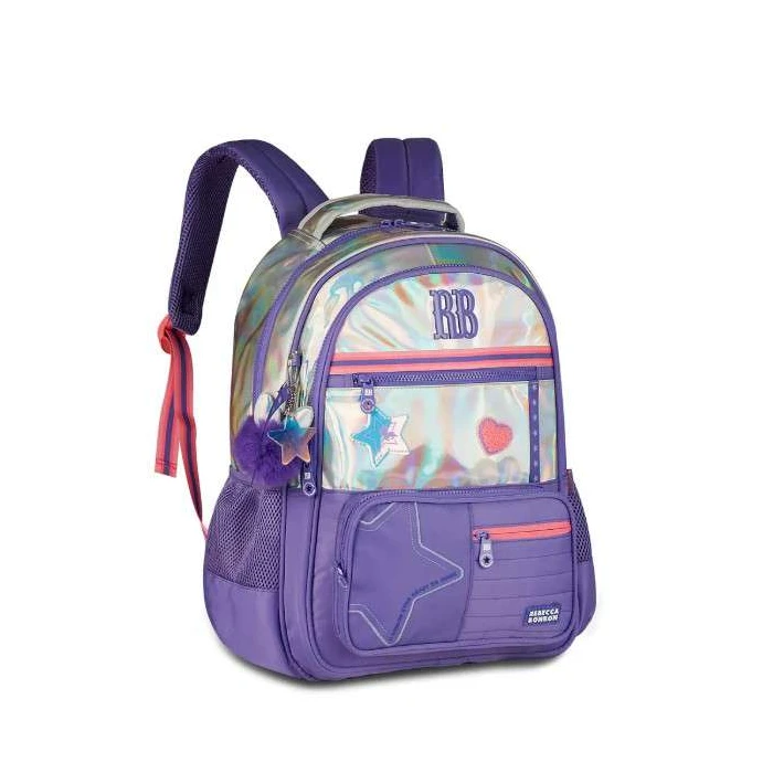 Mochila Rebecca Bonbon RB24592 – estilo, conforto e praticidade em um design exclusivo com patches atoalhados, chaveiro personalizado e compartimento para notebook. Ideal para o dia a dia escolar ou passeios!