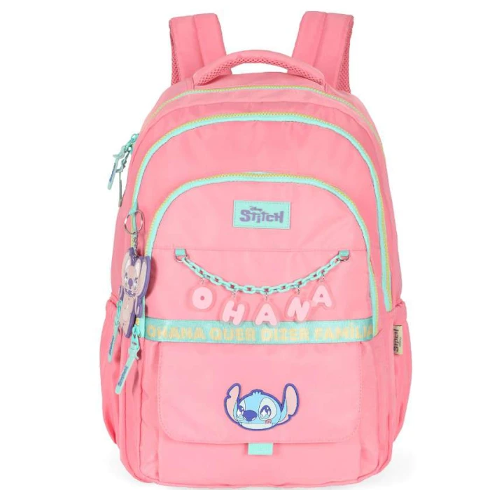 A Mochila S/ Roda Luxcel Stitch Rosa MJ50081SC-SM é um modelo escolar de costas, grande, com estampa do personagem Stitch, ideal para o dia a dia. Ela possui alças acolchoadas e ajustáveis, além de um compartimento específico para laptop.
