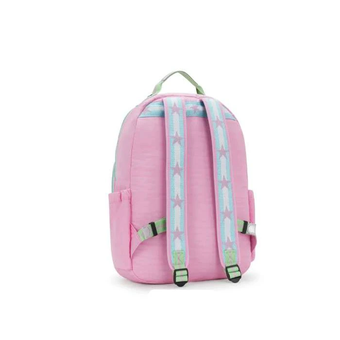 A Mochila Seoul Galaxy Rosa parece ser uma opção excelente para quem precisa de bastante capacidade de armazenamento e organização. Com 4 compartimentos principais, 3 zíperes frontais e 2 bolsos laterais, ela parece bem equipada para manter tudo em ordem, seja para estudos ou trabalho. A presença de alça superior e alças de mochila adiciona versatilidade e conforto no transporte.