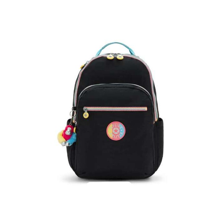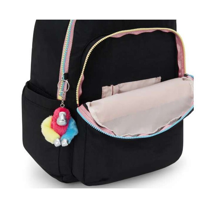 A Mochila Seoul Galaxy Preta parece ser uma opção excelente para quem precisa de bastante capacidade de armazenamento e organização. Com 4 compartimentos principais, 3 zíperes frontais e 2 bolsos laterais, ela parece bem equipada para manter tudo em ordem, seja para estudos ou trabalho. A presença de alça superior e alças de mochila adiciona versatilidade e conforto no transporte.