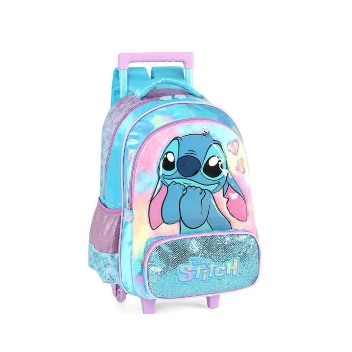 mochila com rodas stitch, mochila stitch luxcel, mochila infantil com carrinho, mochila escolar stitch, mochila disney com rodas, mochila luxcel stitch, mochila com puxador infantil, mochila resistente com rodinhas, mochila escolar de personagem.