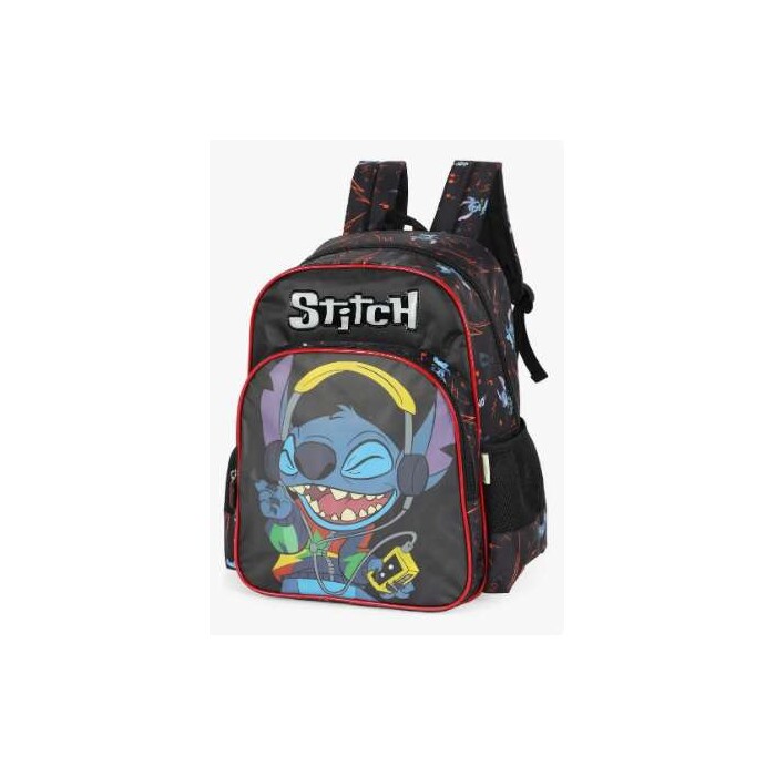 Descrição: A Mochila sem Roda Luxcel Stitch Preta combina praticidade e estilo em um design inspirado no famoso personagem Stitch. Ideal para crianças e adolescentes, ela oferece conforto e praticidade no transporte de livros, materiais escolares e acessórios. Com um puxador ajustável, essa mochila facilita o transporte, . A estampa divertida de Stitch, da Disney, adiciona um toque de personalidade e encanto ao dia a dia.