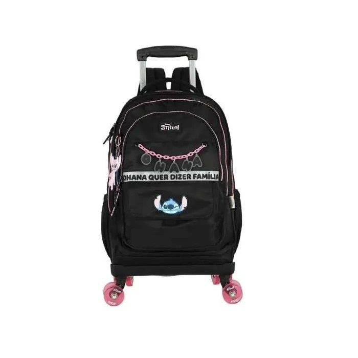 Utilidade: A Mochila com Roda Luxcel Stitch Preta é perfeita para o uso escolar diário, garantindo praticidade ao transportar livros, cadernos e outros itens essenciais. Suas rodas e puxador telescópico tornam o transporte mais fácil, especialmente em escolas com longos corredores ou para viagens curtas. Ideal também para passeios, viagens ou até mesmo para o uso casual, a mochila proporciona conforto, além de ser um item divertido e descolado para os fãs do Stitch.