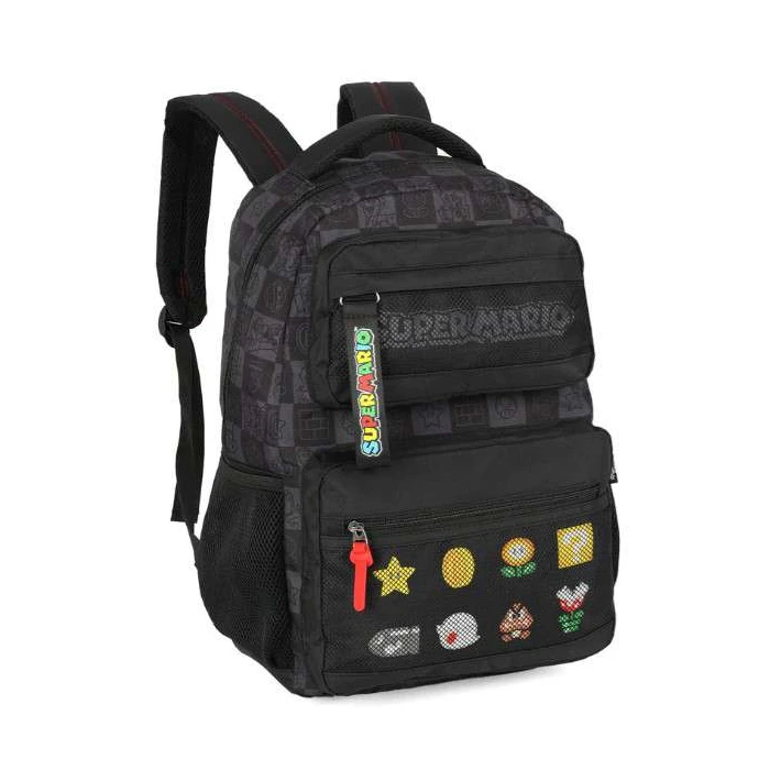 Mochila de Costas Mario Bros, resistente e divertida, ideal para escola e passeios, com design colorido inspirado no icônico personagem dos videogames.