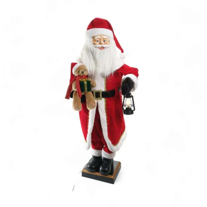 Adicione um toque clássico e encantador à sua decoração natalina com o Papai Noel em pé da Cromus. Com aproximadamente 110 cm de altura, ele veste o tradicional traje vermelho e branco e carrega um urso, representando o espírito generoso do Natal.