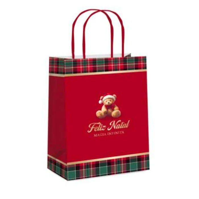 Sacola de papel decorada de natal para presentes Natal Magia Infinita Ursinho, Ideal para embalar e transportar presentes, cosméticos, bijuterias, roupas, calçados e lembranças em geral.