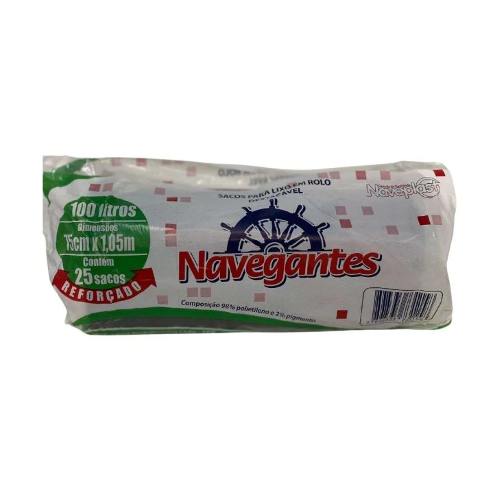 Rolo de Saco de Lixo Preto Naveplast 100 litros com 25 Unidades
