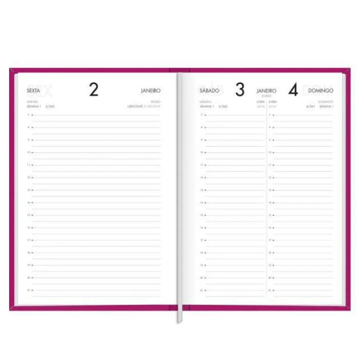 A Agenda Executiva Costurada Diária 13,4 x 19,2 cm Napoli Feminina 2026tem visão de 1 dia por página, exceto sábado e domingo. Possui capa revestida em material especial. Ideal para a organização do dia a dia, em casa ou no trabalho.