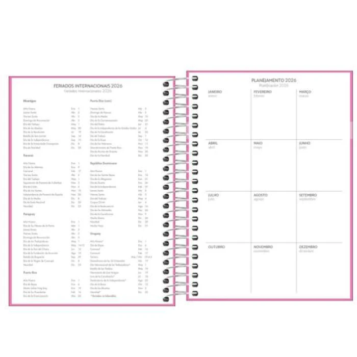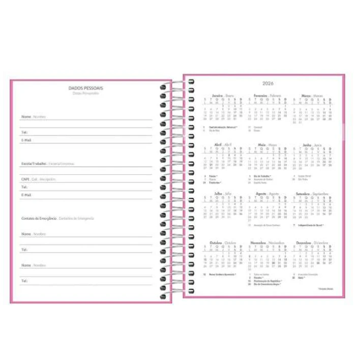 Agenda 2026 com capa dura e espiral colorido, visão diária (exceto fins de semana), tamanho compacto e ideal para manter a rotina organizada com estilo e praticidade.