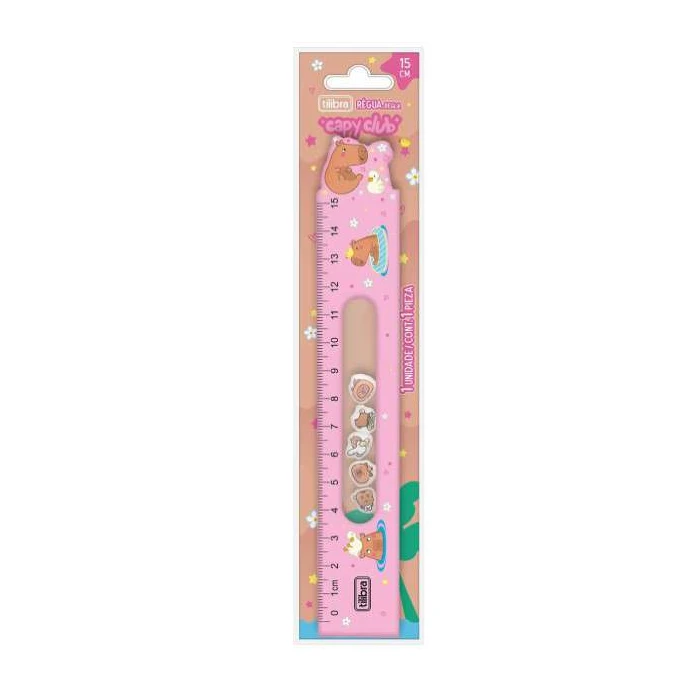 Você irá medir o que precisa de uma maneira muito mais fofa e divertida com a régua decorada com estampa de capivara da Tilibra. Produzida em poliestireno, este acessório de 15 centímetros é perfeito para adicionar um charme extra ao seu material escolar ou de escritório. Além disso, a régua tem uma janela com minicapivaras que se movimentam, tornando-a ainda mais encantadora. Leve já a sua régua de capivara!