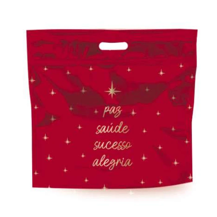 Sacola metalizada para presentes com fechamento em zíper Desejos Natal